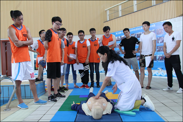 为提高救生员心肺复苏的技能和水平,体育中心特邀请学院卫生所杨爱丽所长为救生员讲解心肺复苏、救护理论知识,现场演示心肺复苏的具体操作要领和技巧,并指导救生员逐一进行了演练。