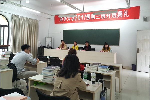 南华大学相关教师给全体新生简要介绍了学科专业的培养要求、教学计划以及纪律要求。开班典礼结束后,王铁骊教授为2017级新生讲授第一堂课---《管理学》。