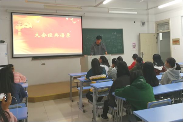 各团支部组织同学们观看了十九大相关视频《砥砺奋斗的五年》和详读十九大报告,回首过去五年的工作和历史性变革,不忘初心,牢记使命。广大团员对十九大精神联系实际展开讨论,发表自己对十九大的理解和感悟,制定今后努力的计划与目标。朗诵大会及团员签名等活动使每一位团员更加切身体会到作为青年学子的责任感与使命感。