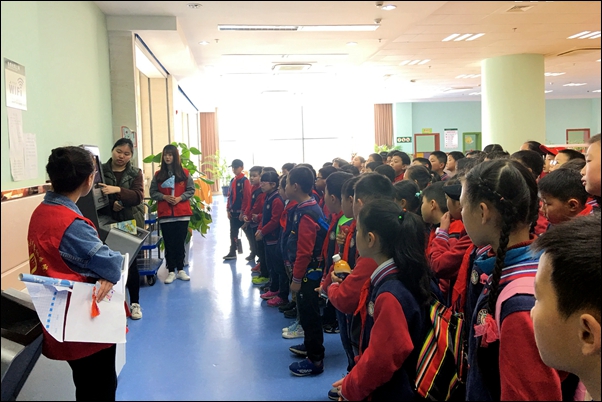 在图书馆,志愿者为小学生们从藏书量、书籍种类、电子书籍平台等方面详细的讲解了图书馆的概况,让他们切实感受到了大学优良的书籍资源和学习氛围。在体育中心,志愿者带领同学们参观了篮球馆、网球馆、游泳馆,展示了我院丰富的体育教学资源。在人文楼,志愿者和同学们举行了书签转赠仪式,小学生们将承载着感谢的书签献给了辛勤为他们服务的志愿者。