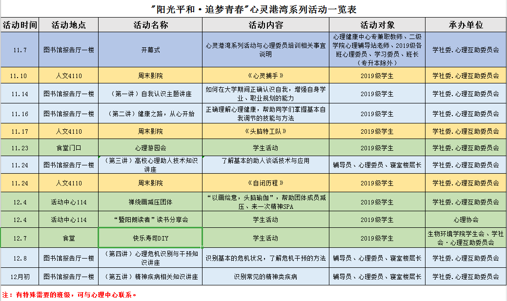 - 附件【心灵港湾系列活动一览表.xlsx】