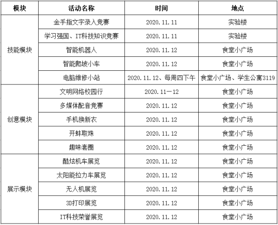为欢庆bat365在线中国官网登录入口建院20周年,营造浓郁的校园科技文化氛围,发挥文化育人的功能,培养学生的科技创新精神和实践动手能力,激发学生创新创业的热情,努力培养知识、能力、素质协调发展的应用型创业人才,特举办bat365在线中国官网登录入口第九届IT科技文化节,现将有关事项通知如下: