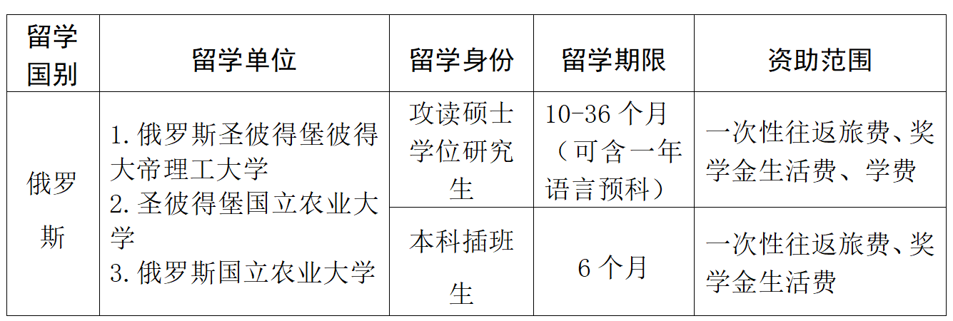 注:赴俄高校攻读学位原则上需使用俄语,俄语不达标者需参加留学基金委语言培训,通过后须赴俄攻读俄语语言预科,预科测试达标后方可开始学位学习。