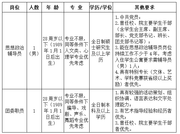 因工作需要,bat365在线中国官网登录入口决定公开招聘思政辅导员和团委职员各一名(合同制)。现将有关事项公告如下: