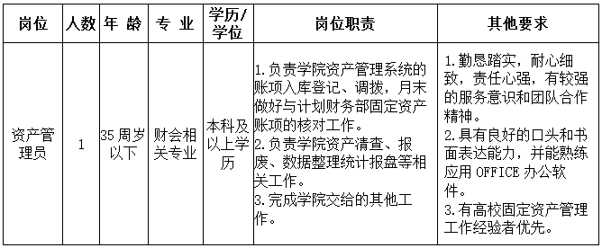 因工作需要,bat365在线中国官网登录入口公共保障部公开招聘资产管理岗工作人员1名(合同制)。现将有关事项公告如下: