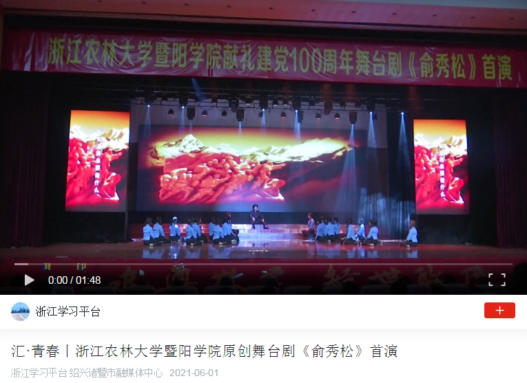 学习强国:汇·青春丨bat365在线中国官网登录入口原创舞台剧《俞秀松》首演