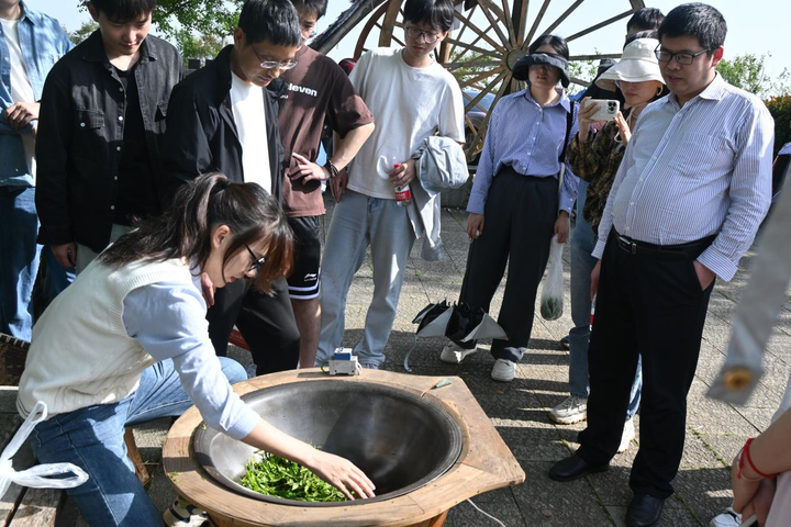 随后,师生党员来到东和乡茶山化身“茶农”采摘茶青,在采茶、制茶、赏茶、品茶、学茶等一系列沉浸式体验活动中,全体师生党员进一步接受了茶廉文化熏陶洗礼。“今天参观了清廉教育基地,还亲身体验到了茶农的辛苦。今后我将恪守‘本心’、在磨炼中锤炼‘初心’、在奋进中牢记‘廉心’。”学生党员黄奕豪说。