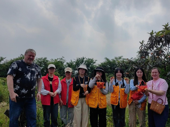 本次调研正值枇杷节,师生深入田间和市场,在体验快乐采摘的同时,还深入调研了枇杷的种植、产销,以及品牌化过程中遇到的难题,对枇杷产业如何依托自身历史文化、打造完整的枇杷产业链、提升产品附加值、推动果农增收致富、带动乡村经济发展,实现共同富裕有了更加立体的认知。调研过程中,师生还为来自俄罗斯的国际友人介绍了枇杷的品种和挑选方式。
