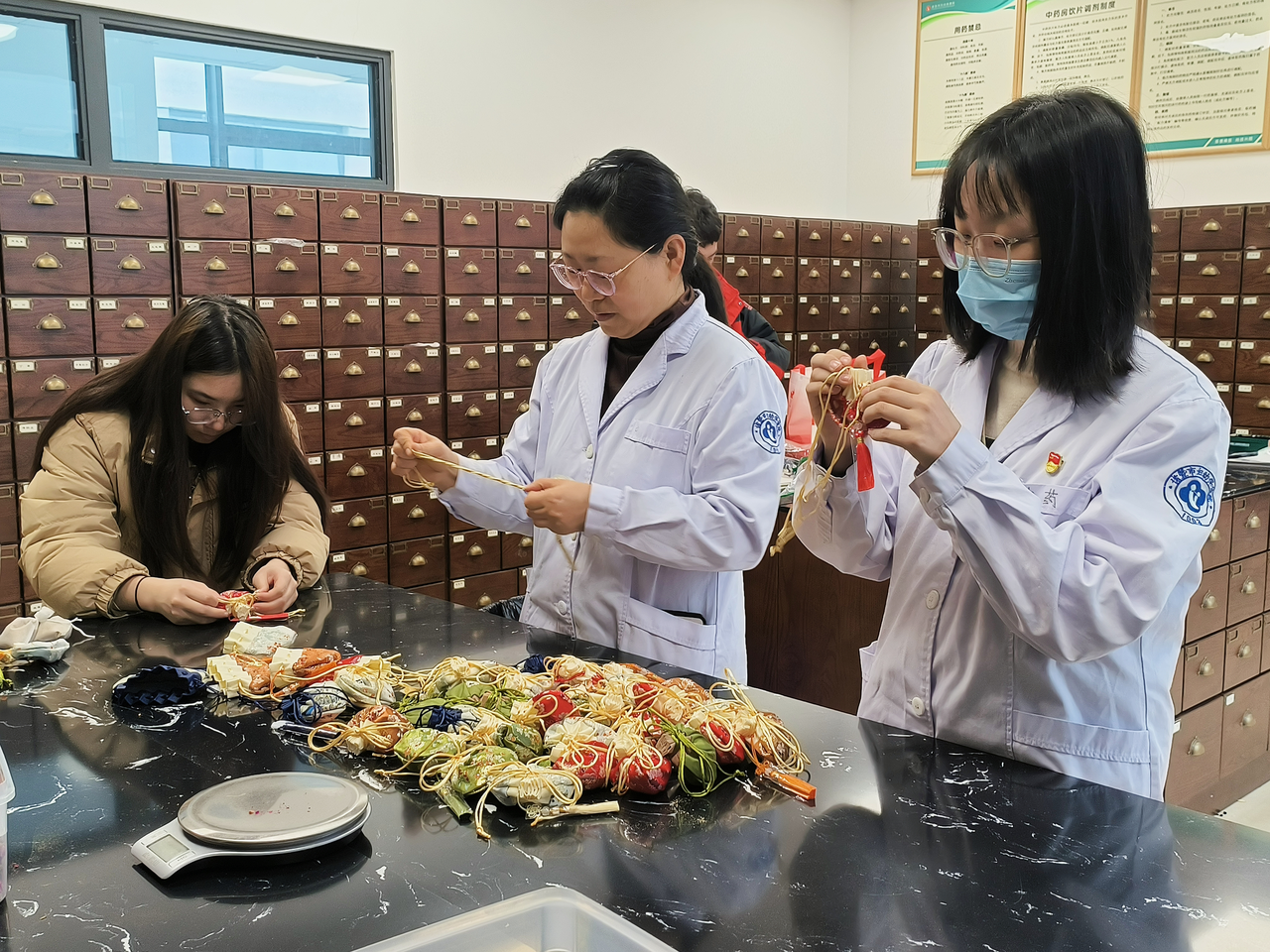 “临近期末,考试压力大,自己动手做香包不仅有趣减压,还可以巩固技能知识”、“今年第一份新年礼物药香十足,有‘益’也有‘意’”……中药学专业的学生说。