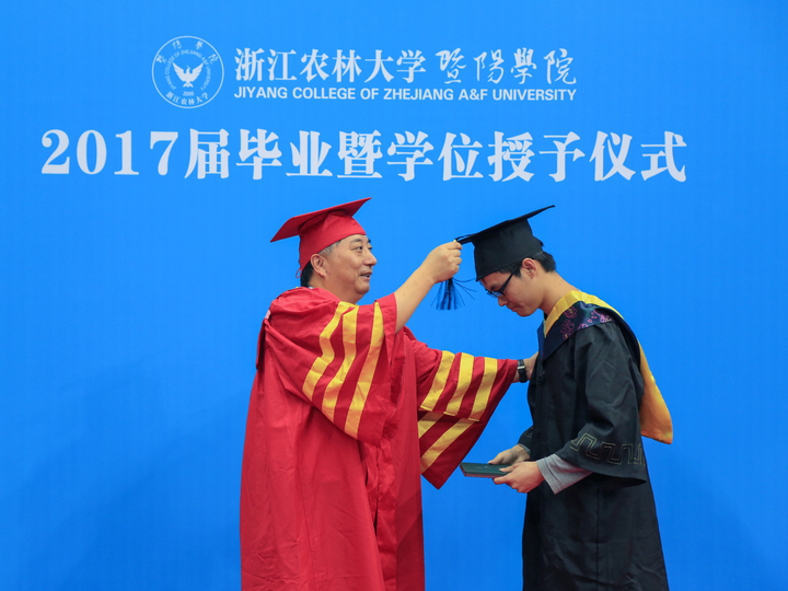 6月15日上午,bat365在线中国官网登录入口举行2017届毕业典礼暨学位授予仪式。bat365在线中国官网登录入口副校长金佩华和bat365在线中国官网登录入口院长石道金为每一位毕业生拨穗、颁发毕业证书和学位证书,并合影留念。