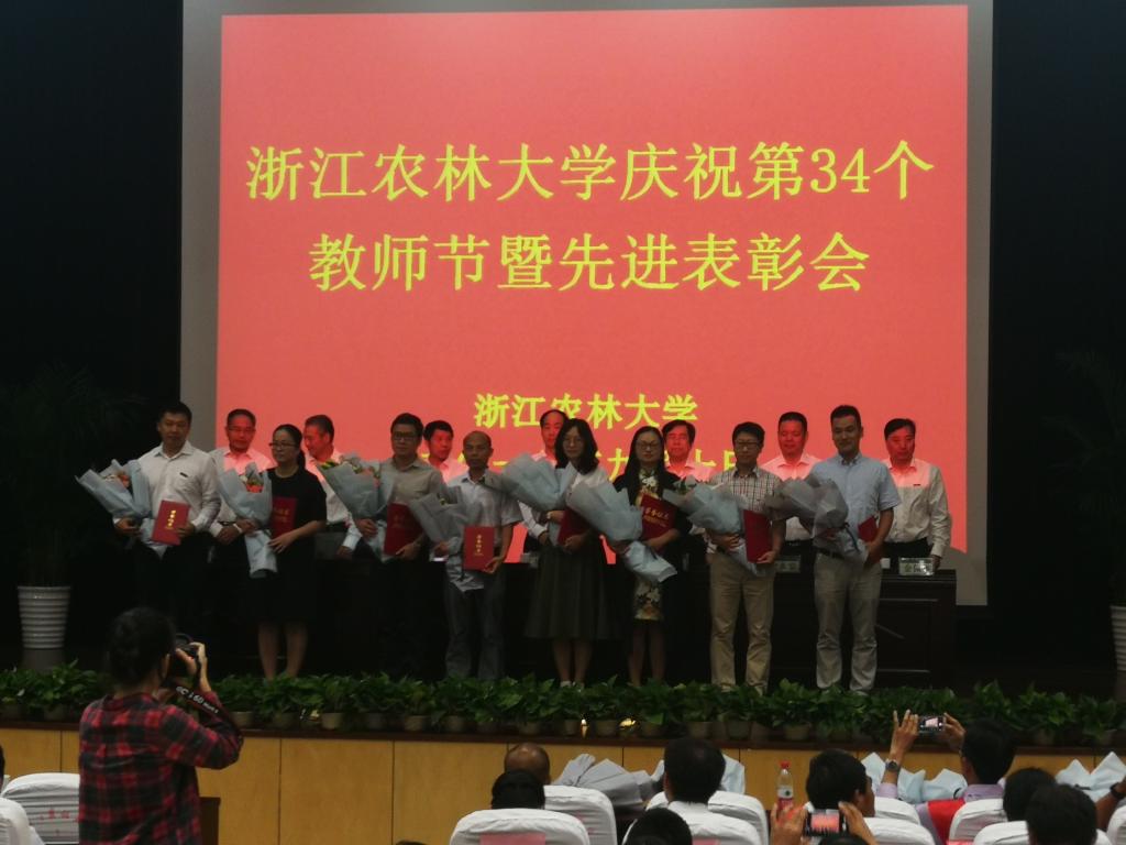 9月10日下午,学校庆祝第34个教师节暨先进表彰会在东湖校区举行,校党政班子成员周国模、应义斌、史永安、王自勇、金佩华、胡祖吉出席表彰大会。我院获得浙江省2016-2018年“三育人”先进个人白尚斌、浙江省第十届高等学校青年教师教学竞赛理科组二等奖钟炳伟、浙江省优秀辅导员宣王威受到表彰。